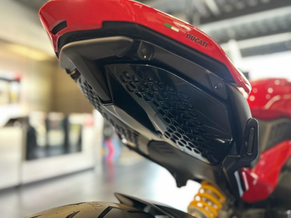 筋肉質で力強いライン、幅広い「ショルダー」部分、そのパフォーマンスを誇示する4本出しのエグゾースト・パイプが、ディアベルV4の圧倒的な存在感を演出しています。新設計されたフロントおよびリアのライトクラスターから始まり、格納式パッセンジャー・フットペグとリア・グラブバーに至るまで、ディテールが違いを生み出し、このモーターサイクルのデザインをさらにユニークで紛れもないものにしています。
