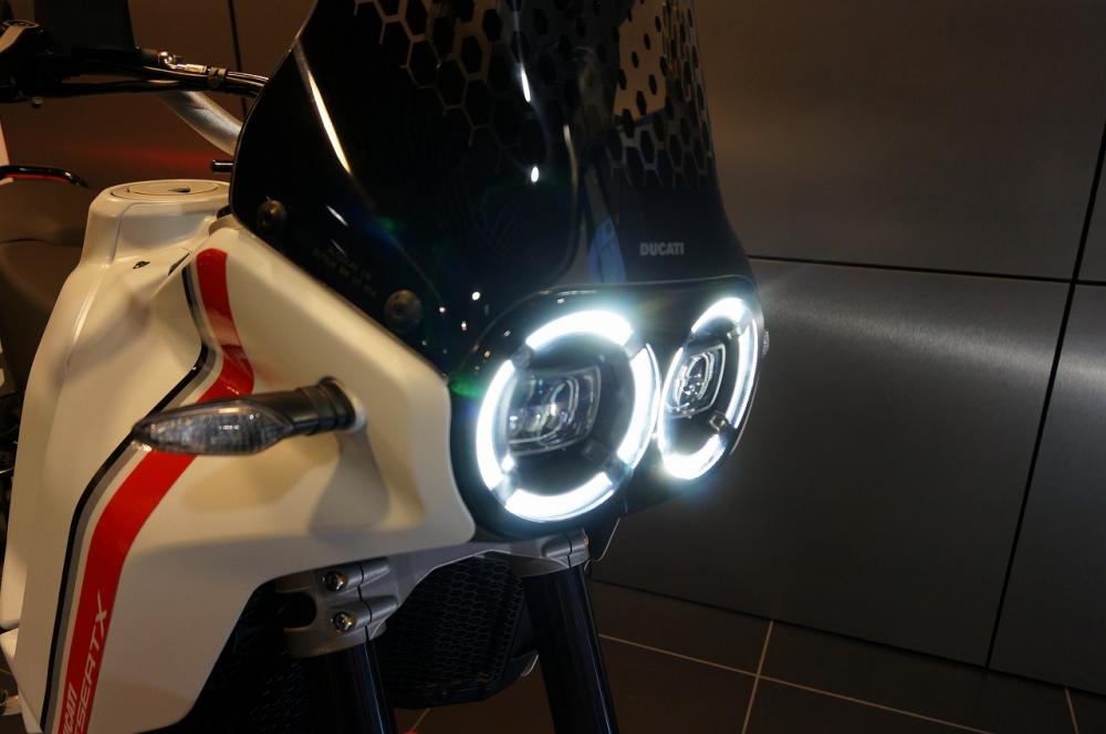 デザートXは、21インチのフロント・ホイールと18インチのリア・ホイール、ロングストローク・サスペンション、オフロード走行のために特別に設計された新しいフレームを備えた、ドゥカティ初の現代的なモデルです。