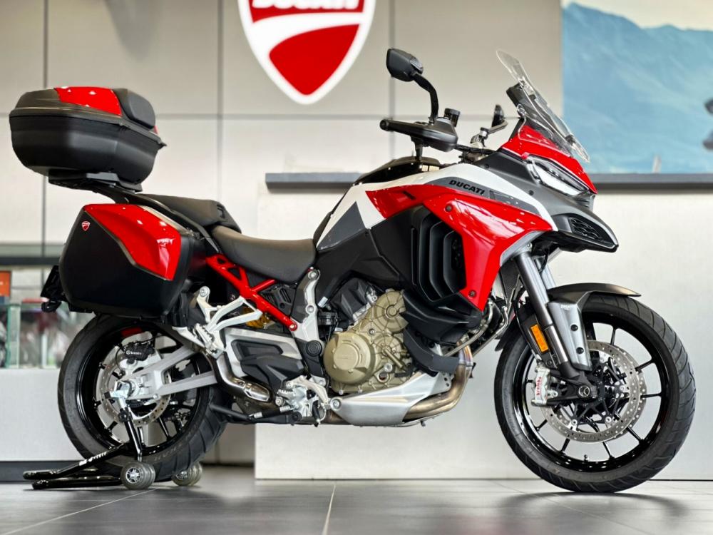 走行わずか6,060kmの上質車両。日本仕様ならではのレーダーシステム(ACC/BSD)を標準装備し、さらに専用アクラポヴィッチサイレンサー&カーボンパーツでスポーティに仕上がった一台です。トップ&サイドケースやヒートシーターも備え、快適性も抜群。スポーツ性能とツーリング性能を両立するMultistrada V4 Sportをぜひご覧ください。