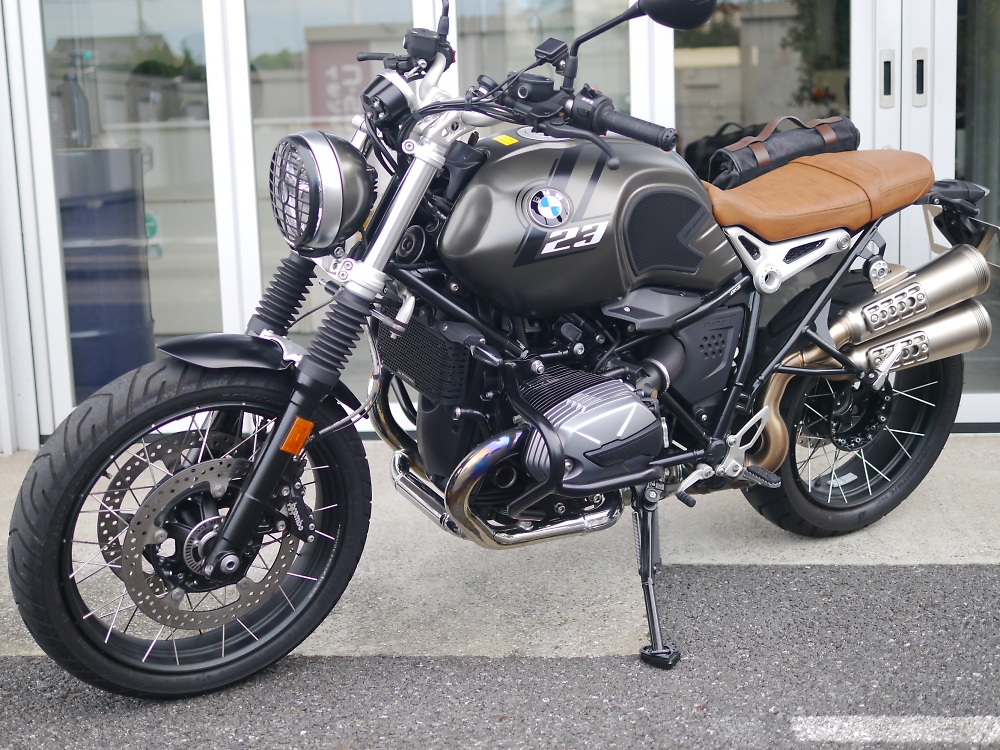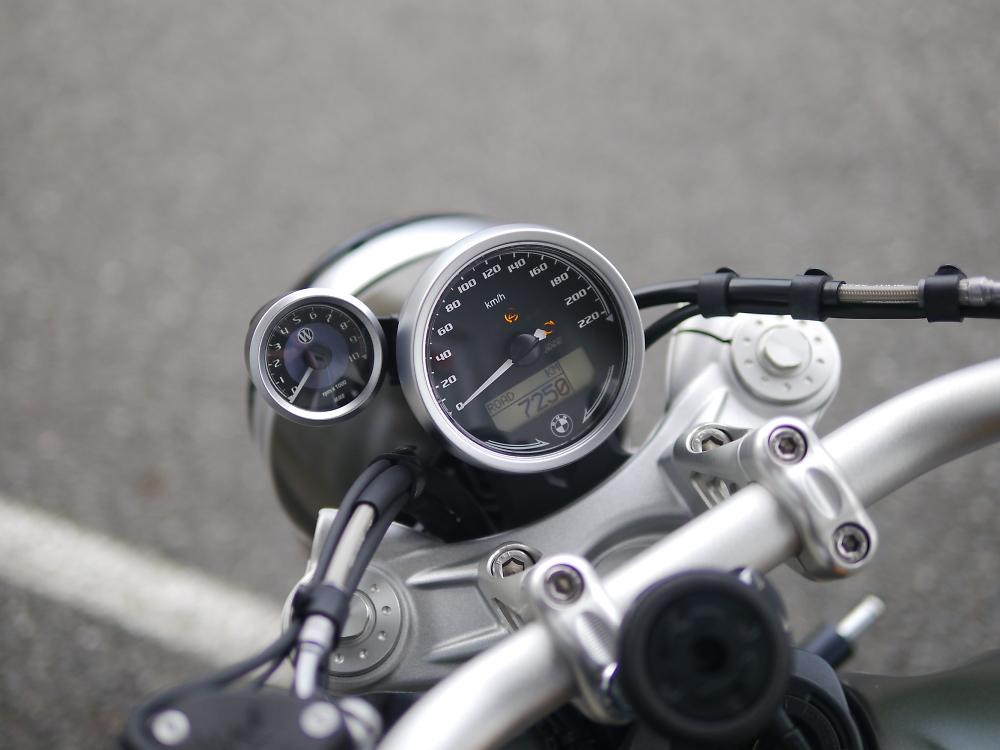 RnineT Scrambler マンハッタンメタリックマット 社外エンジンガード 社外タコメーター USBチャージャーTypeA付