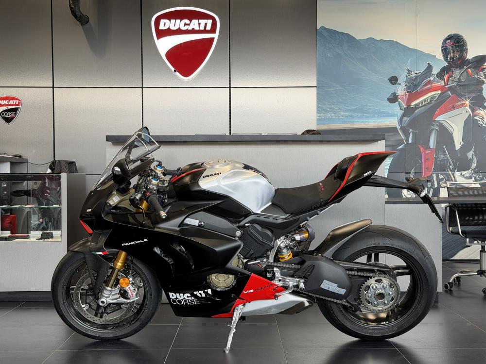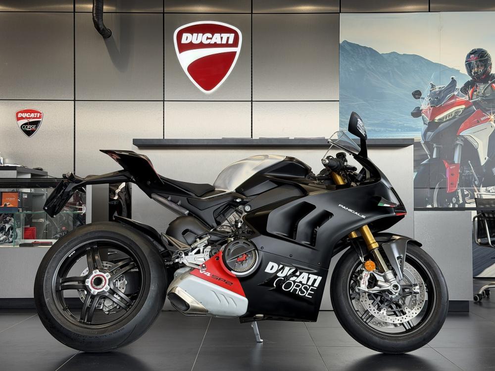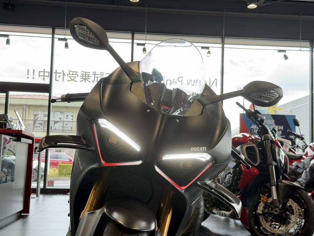 パニガーレV4 SP2は、マットブラックのフェアリング、マットカーボン仕上げのホイールおよびウイングを組み合わせた専用の「ウィンターテスト」カラーを特徴とし、素材を露出させたつや消しアルミニウム製燃料タンクと、光沢レッドのアクセントが見事なコントラストを醸し出しています。MotoGPから派生した1,103ccデスモセディチ・ストラダーレ、カーボンファイバー製ホイール、ブレンボ製Stylema Rブレーキキャリパー、MCSラジアル・マスターシリンダー、乾式クラッチ、520チェーン、ビレット・アルミニウム製フットペグ、サーキット走行用の専用キットをはじめとするテクニカルスペックにより、この「SP」バージョンは、2022年モデルに施されたすべての改良を含めて、パニガーレV4のレーシング・キャラクターを最大限に高めています。