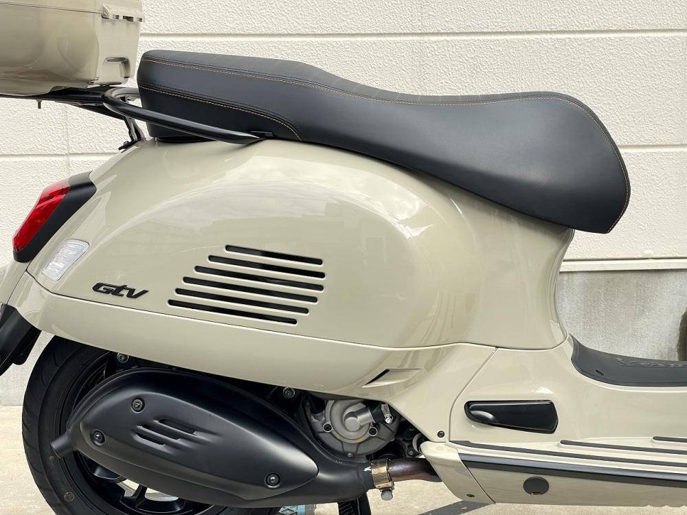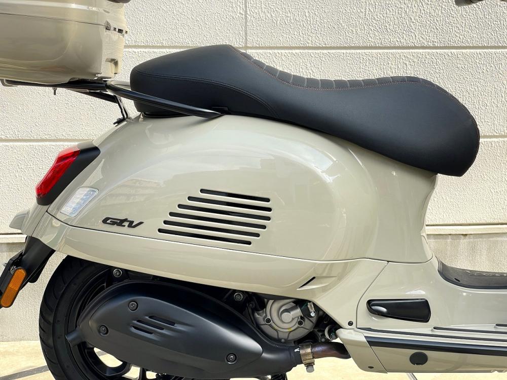 2023年、Euro5対応に伴って ボディ形状見直し・全灯火LED・キーレス化・足付き改善されたシート・フロントサスペンションおよびブレーキ性能強化 が実装された 新型GTS をベースに、特徴的な 「LED ローヘッドライト」と 古い年代のメーターを思わせる丸型を踏襲しつつ中身は最新の「デジタルインストルメント(計器)」を備えたのが、現行 GTV となります。