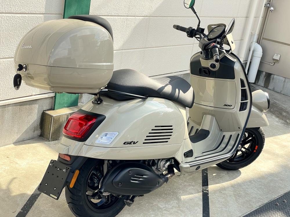 車体同色トップボックス と GTS300 SuperSport 標準シート の組合せにより、タンデム走行やツーリング時の後部座席積載も容易になっております。