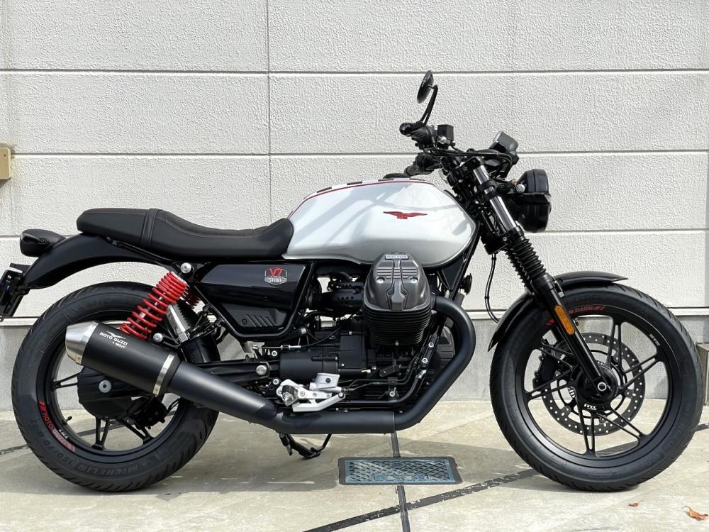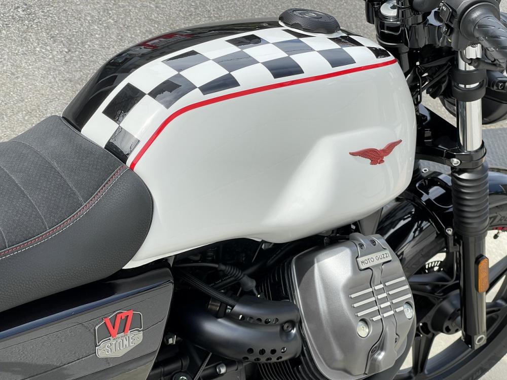 チェッカーフラッグが施された専用タンクとアローサイレンサーを標準装備した、2024年の特別仕様車 V7 Stone TEN 。