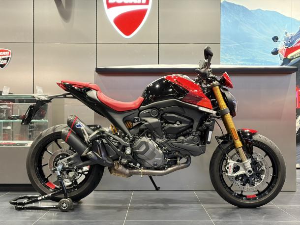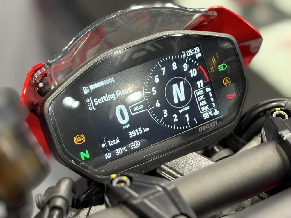 走行距離3915km低走行車!エンジンスライダー・タンクパッド・USB・ETCのみ装備のノーマル車両!OHLINS製電子制御サスペンション・テルミニョーニ製サイレンサー標準装備。モンスターSP専用カラーリング。