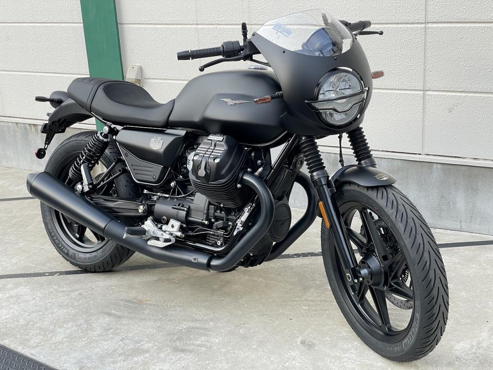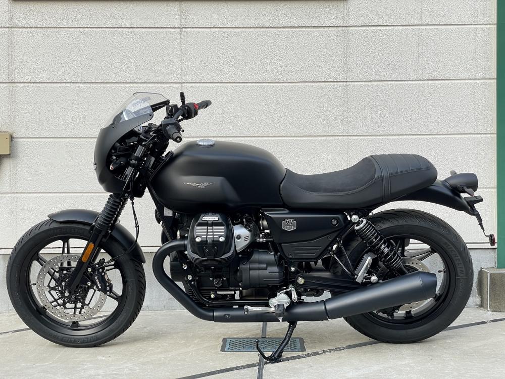 新車 V7 Stone ルビードブラック に、塗装済純正フェアリング・インジェクターカバーを取り付けしてご案内いたします。