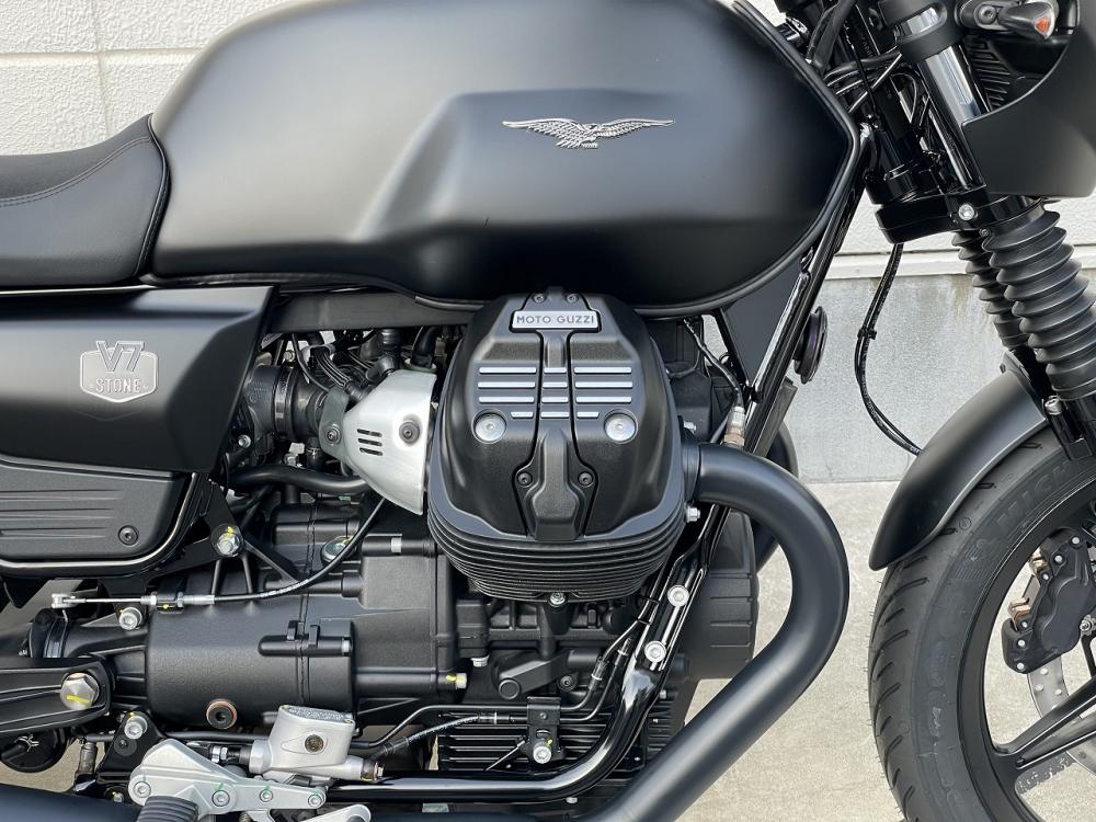 その機械構造剥き出しの特異造形エンジンと、名の通り原石と呼べる無駄を削ぎ落した簡潔な意匠の対比を個性に、21~24年ユーロ5仕様のグッツィを代表するモデルとなった V7 STONE 。 新しい仕様はスペシャルやスポルトの原型になっているその構成に、クルーズコントロールや新型メーターといった機能部品付加にてその完成度を一層高めております。