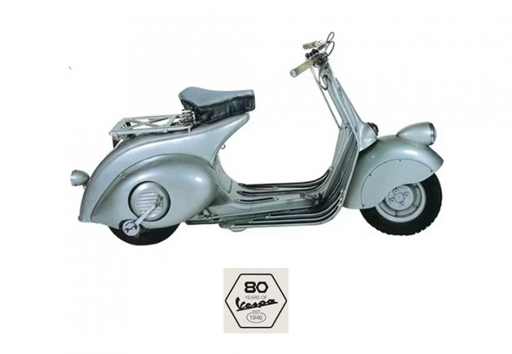 80周年記念車両は、戦後復興期の激動と創造性の波に乗り、イタリアをはじめ、後にヨーロッパを席巻するメーカーの量産第一号モデル「Vespa 98」を主とした40年代の初期製品から着想を得て構成。 その頃の象徴的な色であり遺産でもある「パステルグリーン」を纏っての登場です。